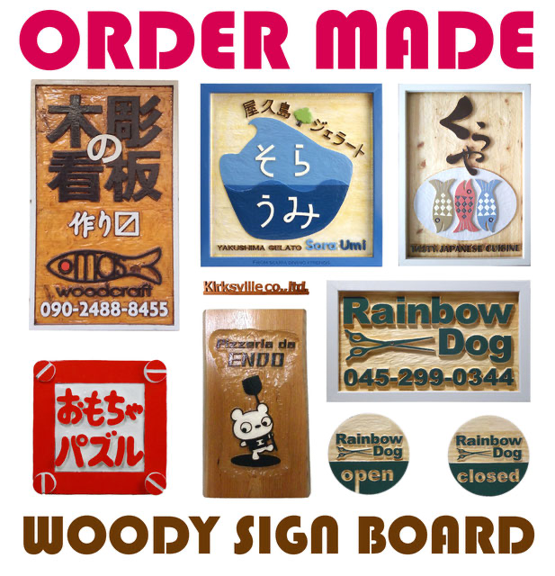 素朴な味わいの木彫りの看板